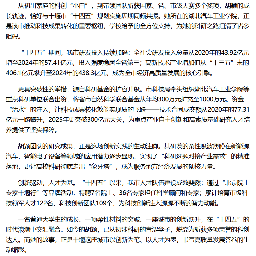 【十堰日报】一位大学生与一座工业城的创新共鸣—— 从技术“小白”到科创“达人”