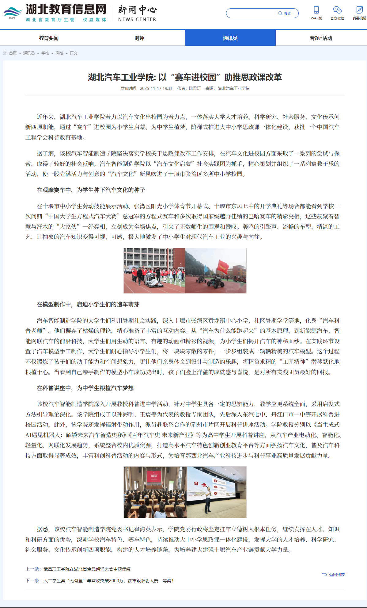 【湖北教育信息网】beat365在线唯一官网: 以“赛车进校园”助推思政课改革