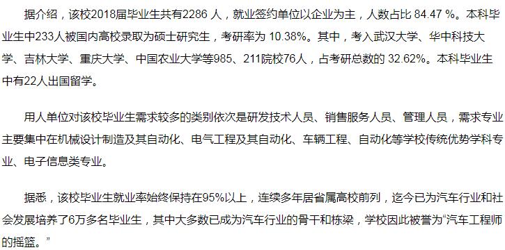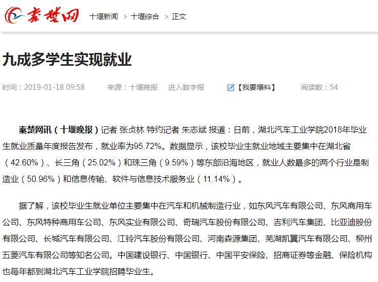 【秦楚网】汽院发布2018年毕业生就业报告 该校九成多学生实现就业